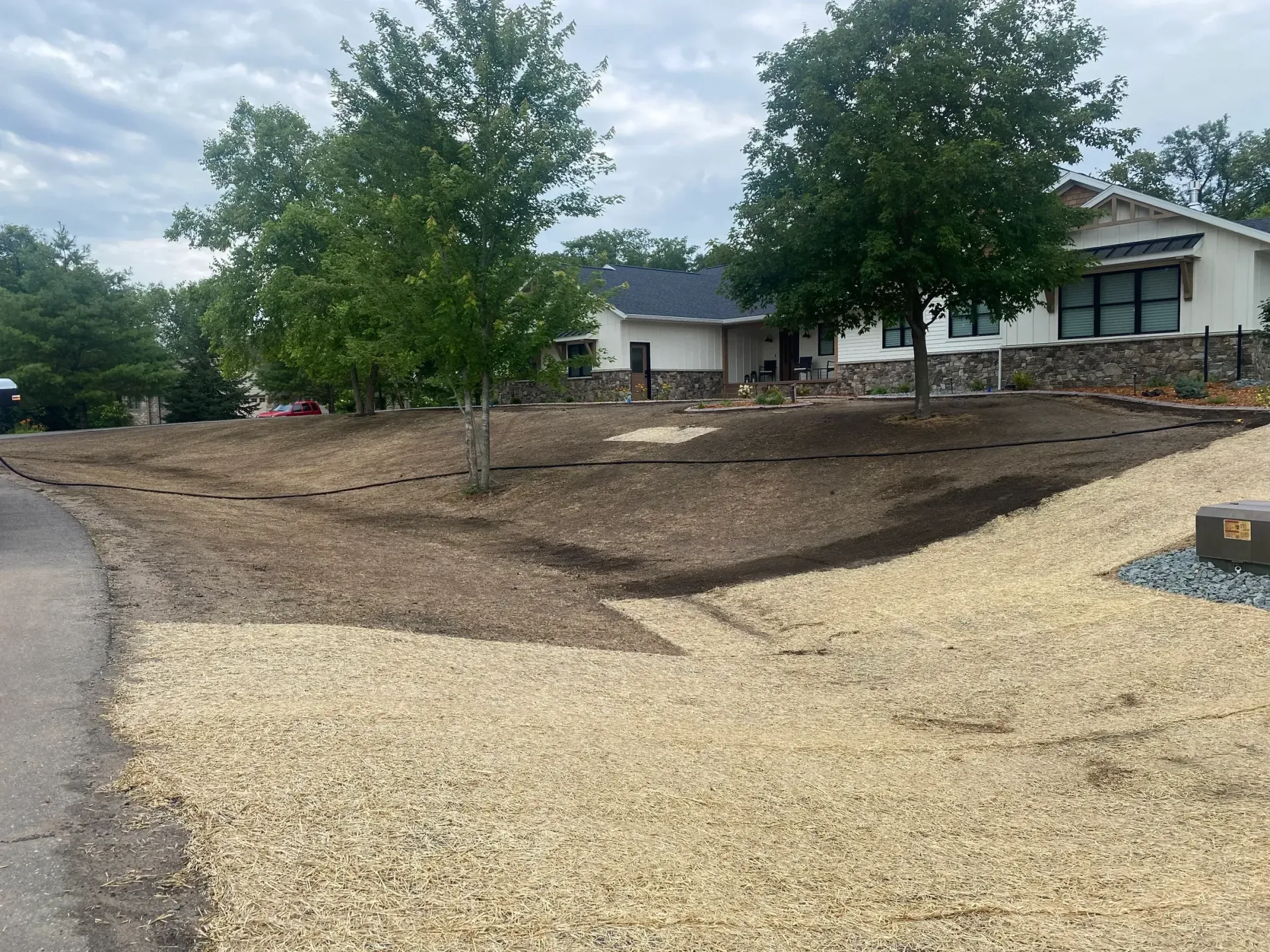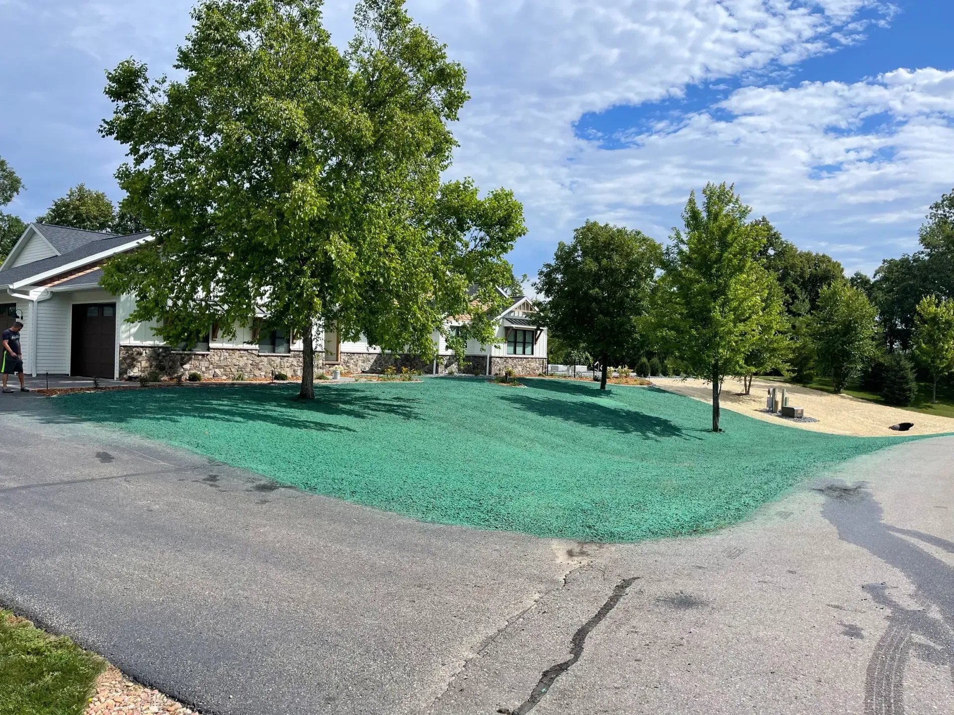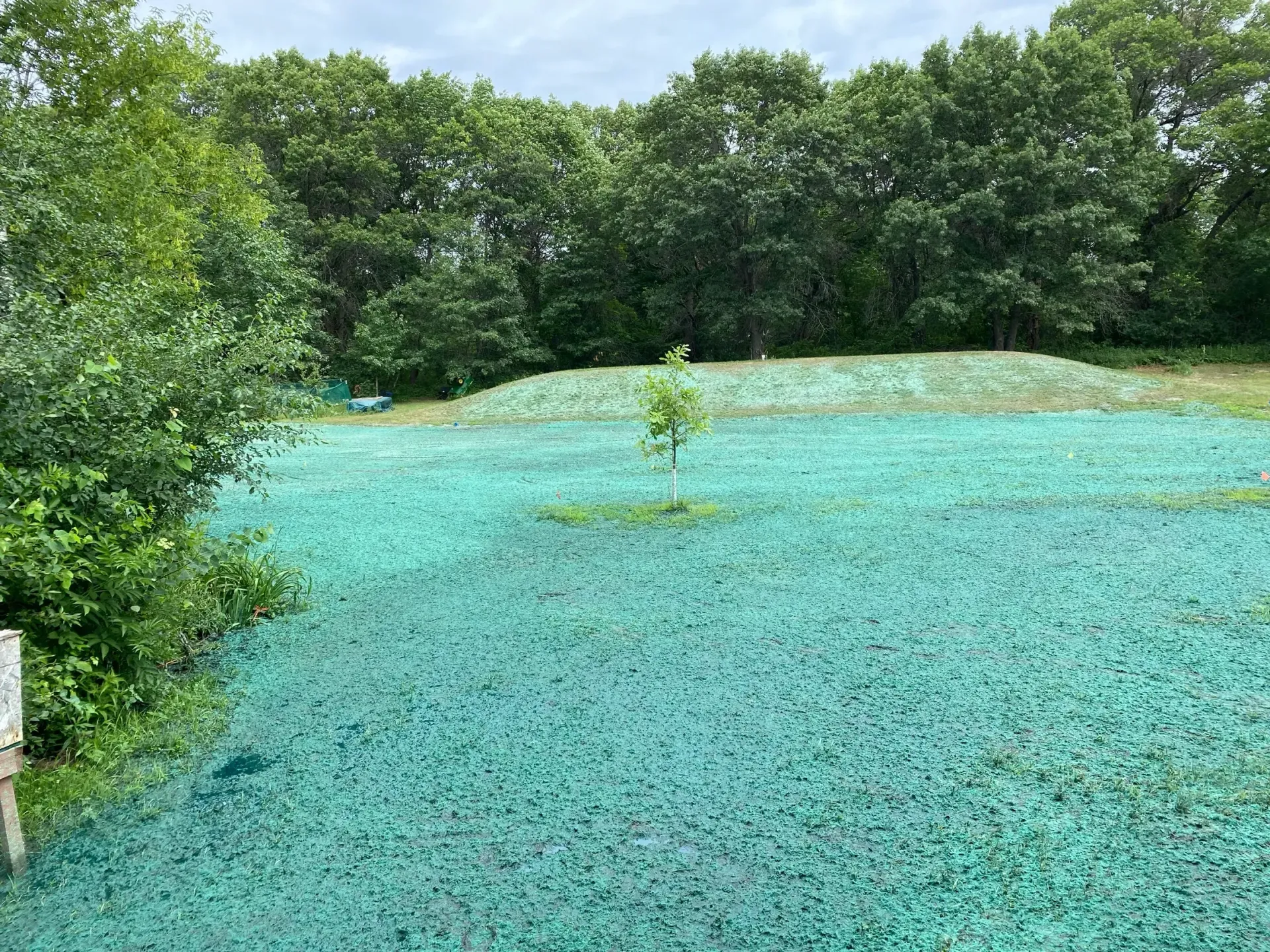 Hydroseed mixture is then sprayed, covering every area on the soil.